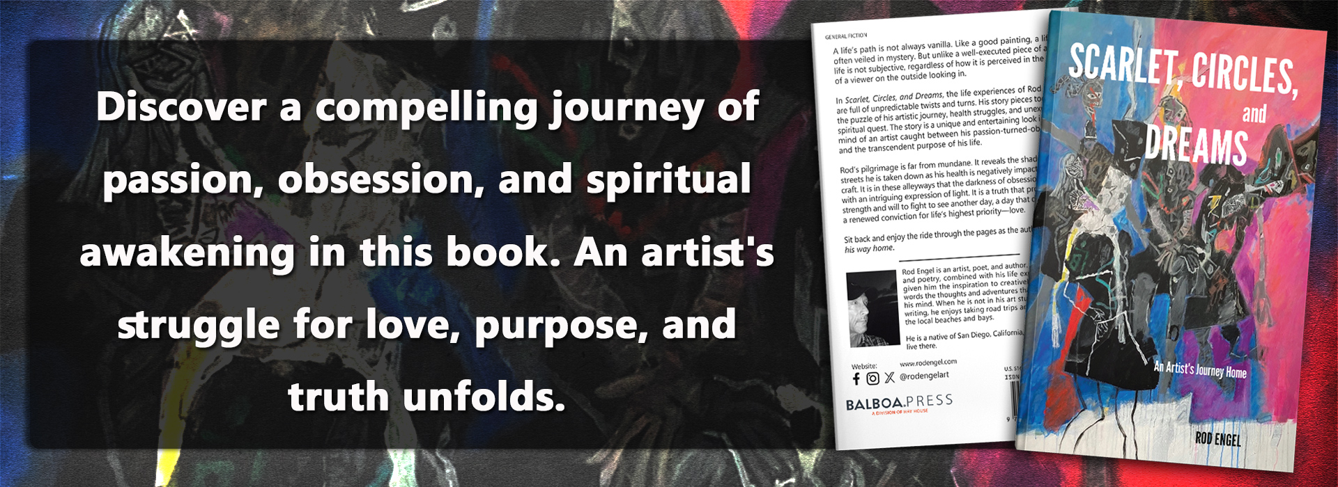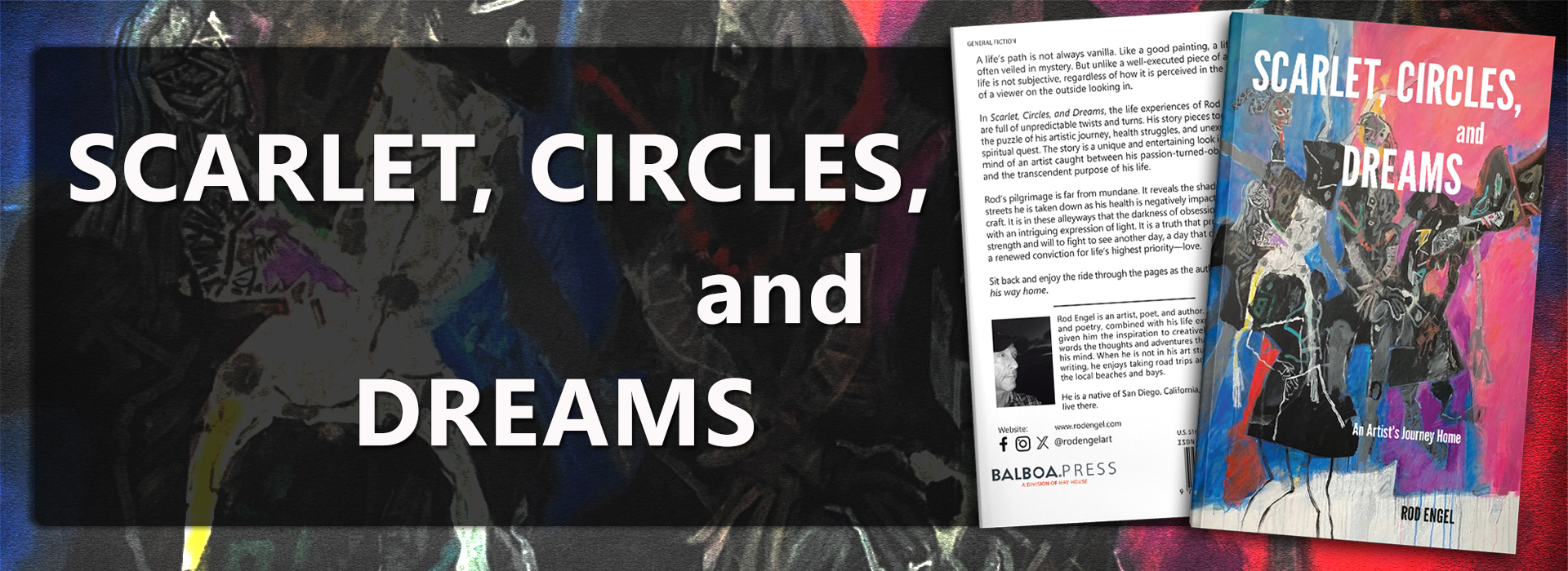 In Scarlet, Circles, and Dreams, the life experiences of Rod Engel are full of unpredictable twists and turns. His story pieces together the puzzle of his artistic journey, health struggles, and unexpected spiritual quest. The story is a unique and entertaining look into the mind of an artist caught between his passion-turned-obsession and the transcendent purpose of his life.